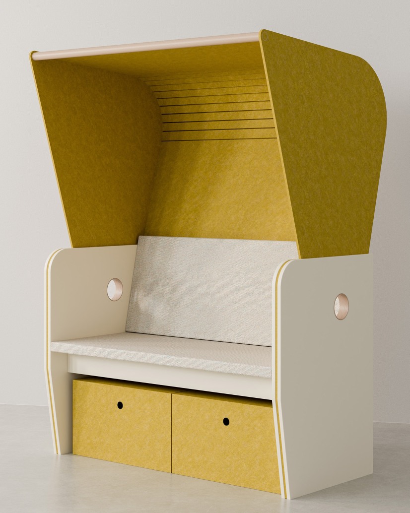 Les idées innovantes et durables pour le lieu de travail moderne sont plus demandées que jamais. Depuis 2004 déjà, le magazine OFFICE ROXX de la maison d'édition berlinoise PRIMA VIER Nehring élit une fois par an les 100 meilleures solutions de bureau de l'année. Le BALTIC lounge en forme de chaise de plage a atteint la première place en 2024. Les principaux critères de sélection étaient la durabilité écologique, le gain de productivité, le travail hybride, la facilité d'utilisation, le design, la santé et le rapport qualité-prix. Convaincs-toi toi aussi de la polyvalence de ce meuble de bureau qui apporte l'ambiance des vacances à la plage au bureau. Baltic est à la fois un espace de communication et un lieu de retraite. Sous la banquette rembourrée se trouvent deux tiroirs qui, une fois ouverts, servent de repose-pieds. Des encoches rondes dans les parois latérales gauche et droite permettent de câbler les ordinateurs portables et autres et d'éviter de trébucher sur les câbles au niveau des pieds.