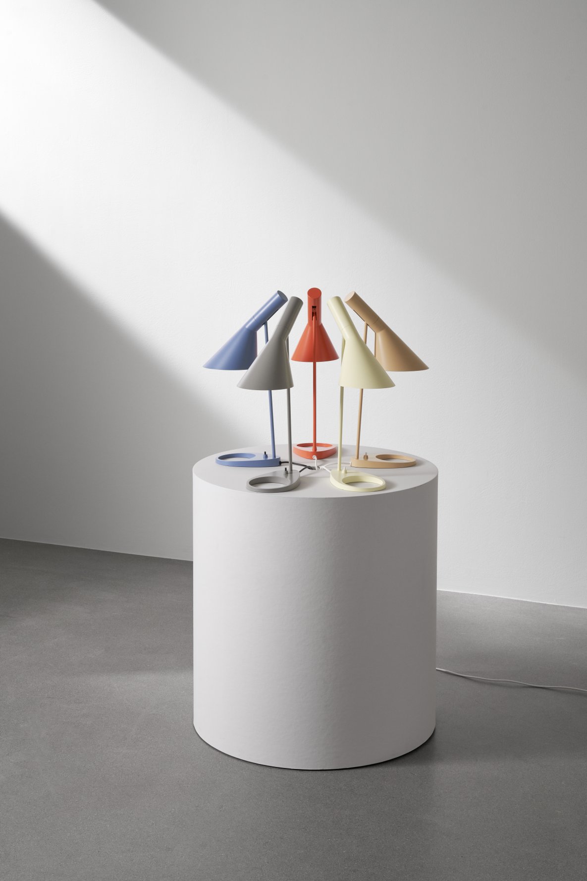 Celui-ci était chargé de l'aménagement de l'hôtel SAS Royal à Copenhague, ce qui comprenait l'aménagement intérieur complet, du mobilier à l'éclairage. C'est dans ce cadre qu'a été créée la lampe de table AJ, qui rend de bons services aussi bien comme lampe de bureau que comme lumière d'ambiance sur la table d'appoint.