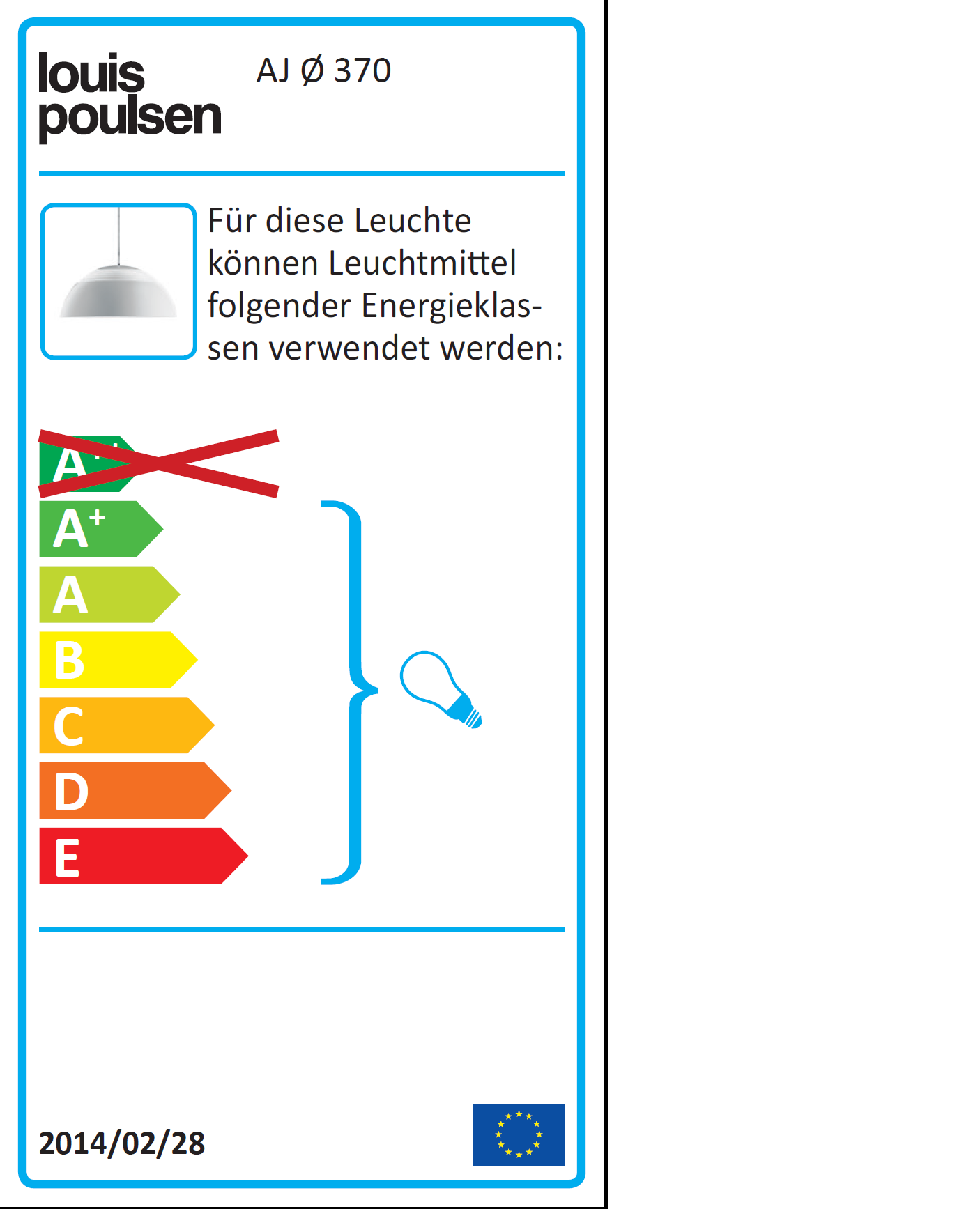 | Convient pour les lampes énergie classes A +, A, B, C, D, E. |
