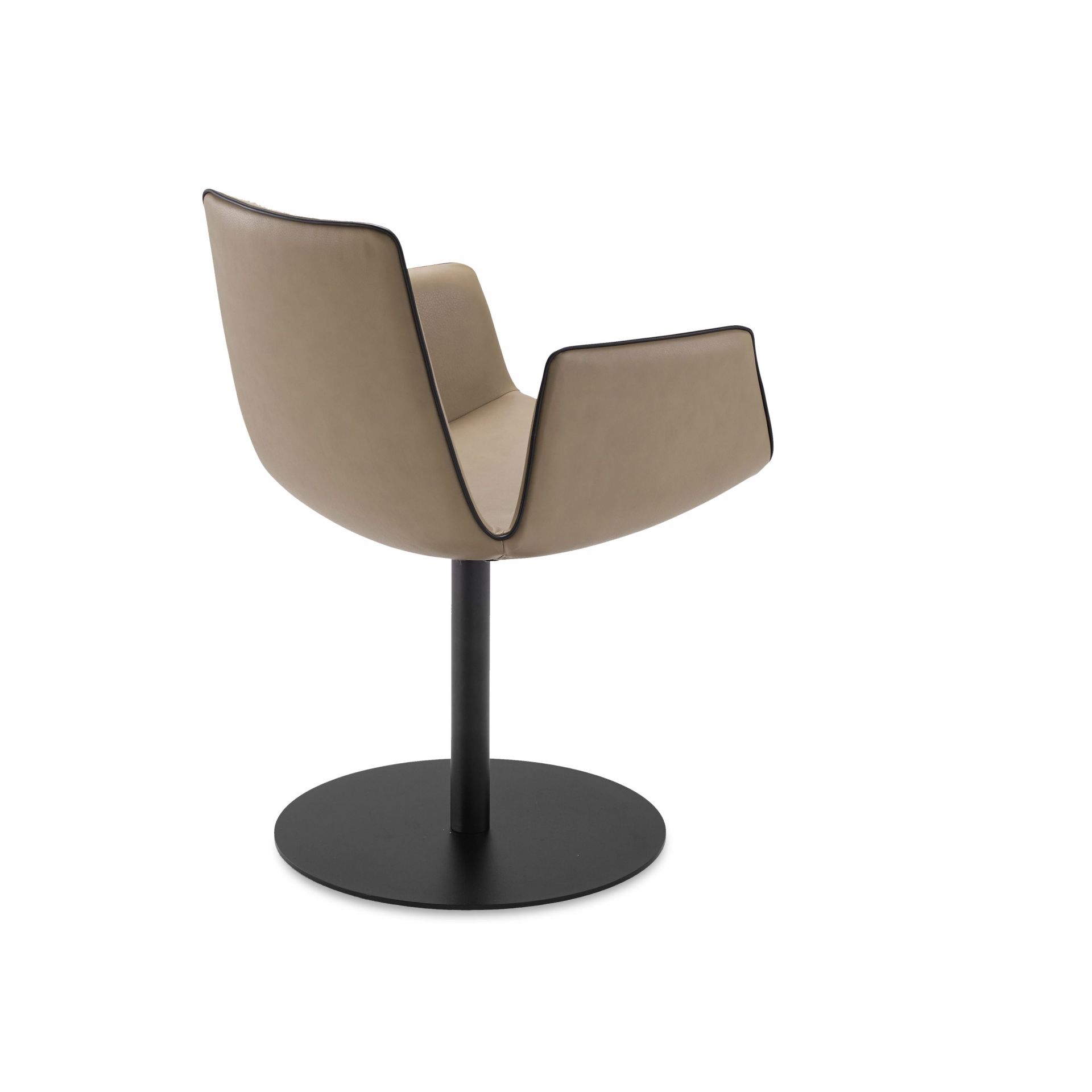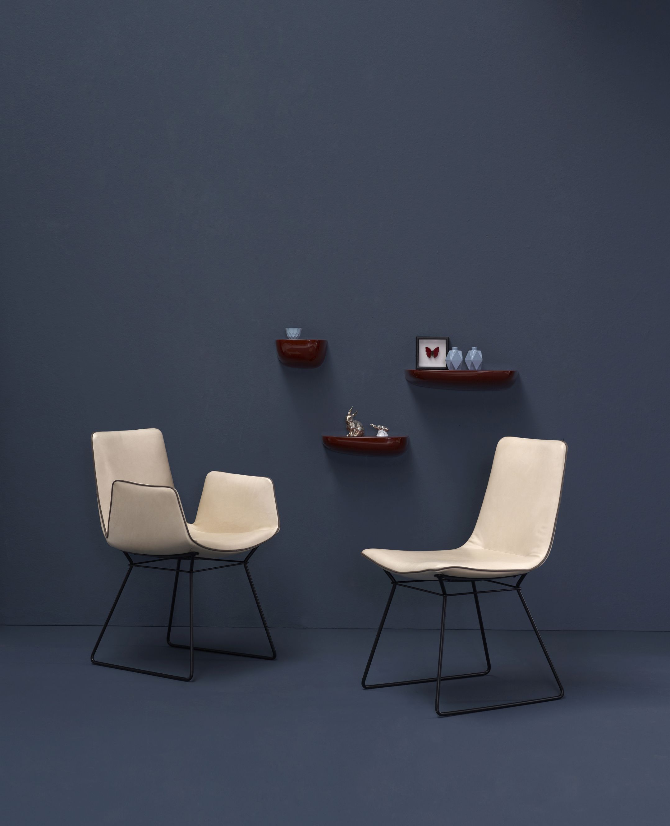 Le modèle Amelie avec accoudoirs suit lui aussi des lignes claires. Les accoudoirs supplémentaires rendent l'assise de cette chaise particulièrement agréable . Une coque d'assise entièrement rembourrée augmente encore le confort. Un renforcement des bords arrondit visuellement l'assise et le dossier et améliore encore le design .