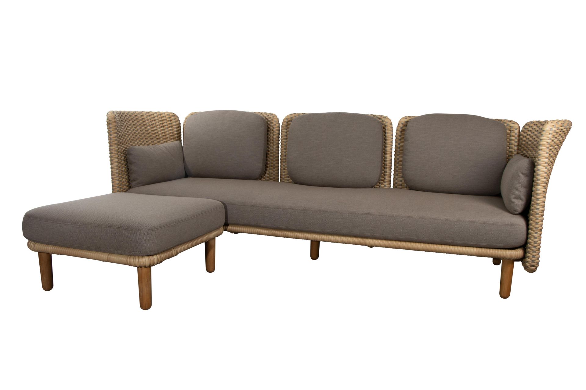 Les modules d'assise se composent d'une base solide avec des pieds en teck . Les coussins disposent de Cane-Line AirTouch et offrent un confort sans compromis ainsi que le système QuickDry & Airflow, qui garantit que les coussins sont rapidement secs après une averse.