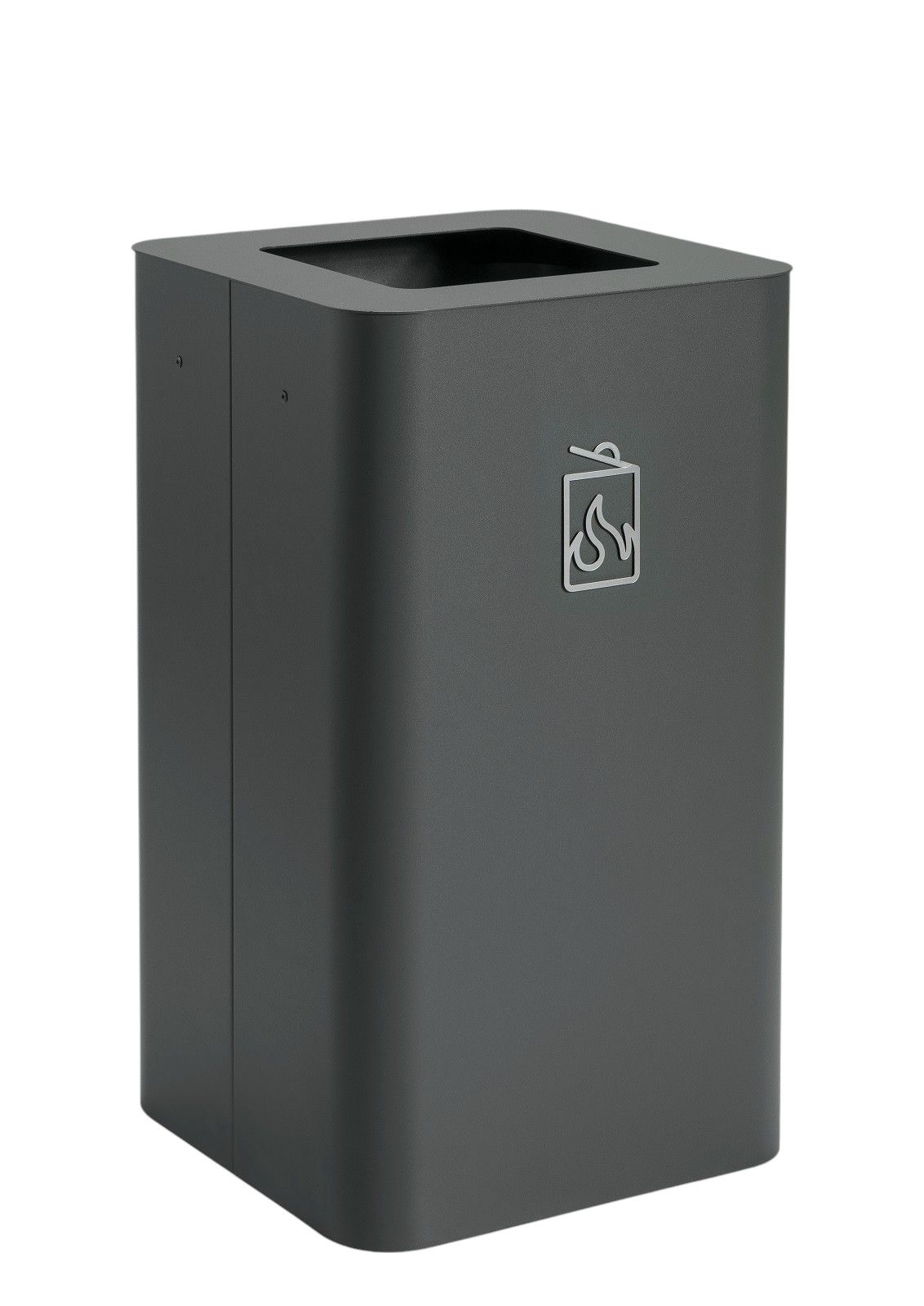 La poubelle Arkad mesure 40 cm de large et de profondeur, 70 cm de haut et a une capacité de 100 litres. Cet accessoire pratique pour le quotidien est disponible à l'unité, par lot de deux ou trois, et sur pieds ou sur roulettes. Elle est peinte avec une peinture structurée mate métallique et est disponible dans les couleurs suivantes : blanc de signalisation, anthracite, terre cuite, Vert pâle, Latte et Deep Burgundy disponibles. et