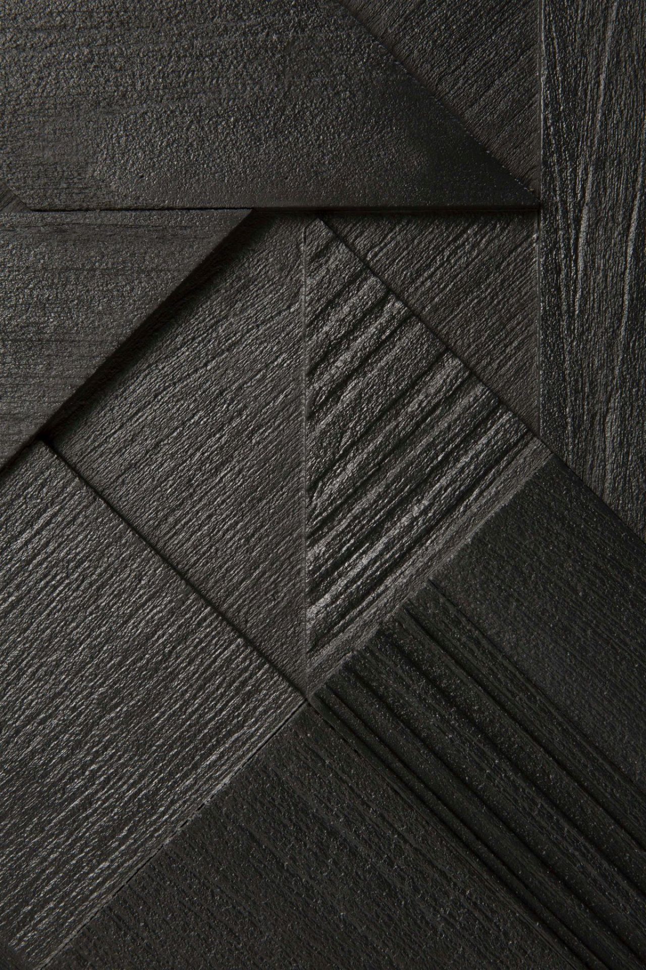 La base du motif est un triangle qui est placé et répliqué de différentes manières. L'utilisation de couches multiples crée un sentiment complexe de profondeur et de dynamisme, donnant aux façades de l'armoire une apparence presque mobile. Le design non conventionnel fait du meuble TV Graphic d'Ethnicraft un véritable accroche-regard.