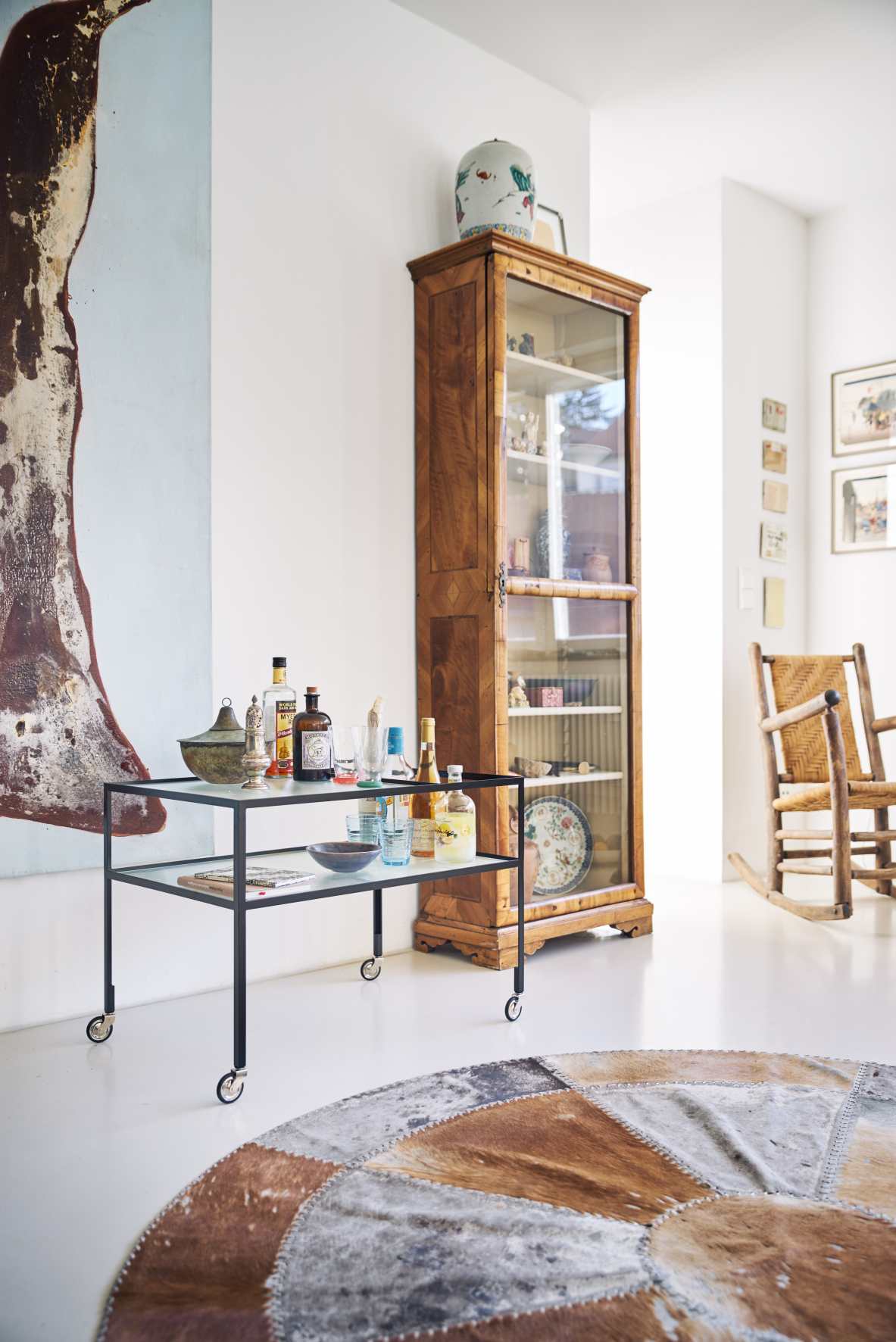 Le chariot-bar culte Hirche, dans une nouvelle édition de Richard Lampert, est composé de cornières en acier thermolaqué RAL 9005 et de panneaux de verre à insérer de 4 mm d'épaisseur en verre cannelé typique ainsi que de roulettes classiques et gracieuses des années 50. Il mesure 70 cm de long, 46 cm de large et 50 cm de haut, et est disponible dans notre boutique en ligne en blanc.