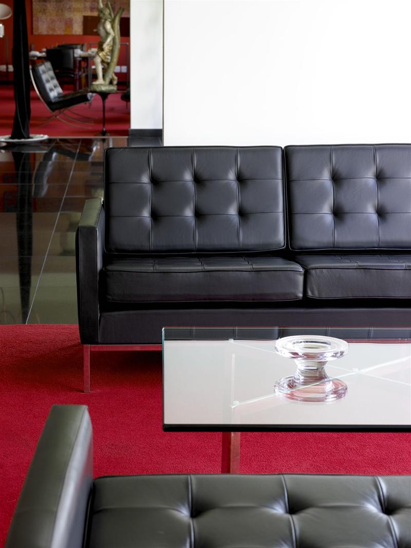 Le cristal s'associe au cuir : table basse Barcelona de Knoll
