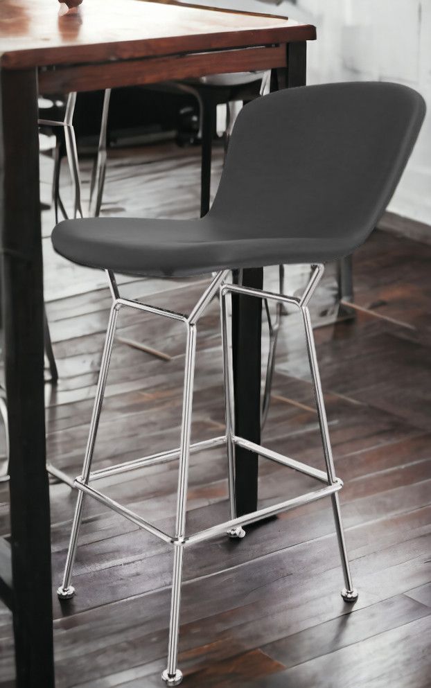 La structure est une construction en acier soudé avec des barres en chrome poli ou satiné. Les coussins d'assise sont fixés à la chaise par des boutons-pression. Le tabouret avec hauteur de comptoir mesure 100 cm de haut, 54 cm de large et 58 cm de profondeur. La hauteur d'assise est de 68 cm.