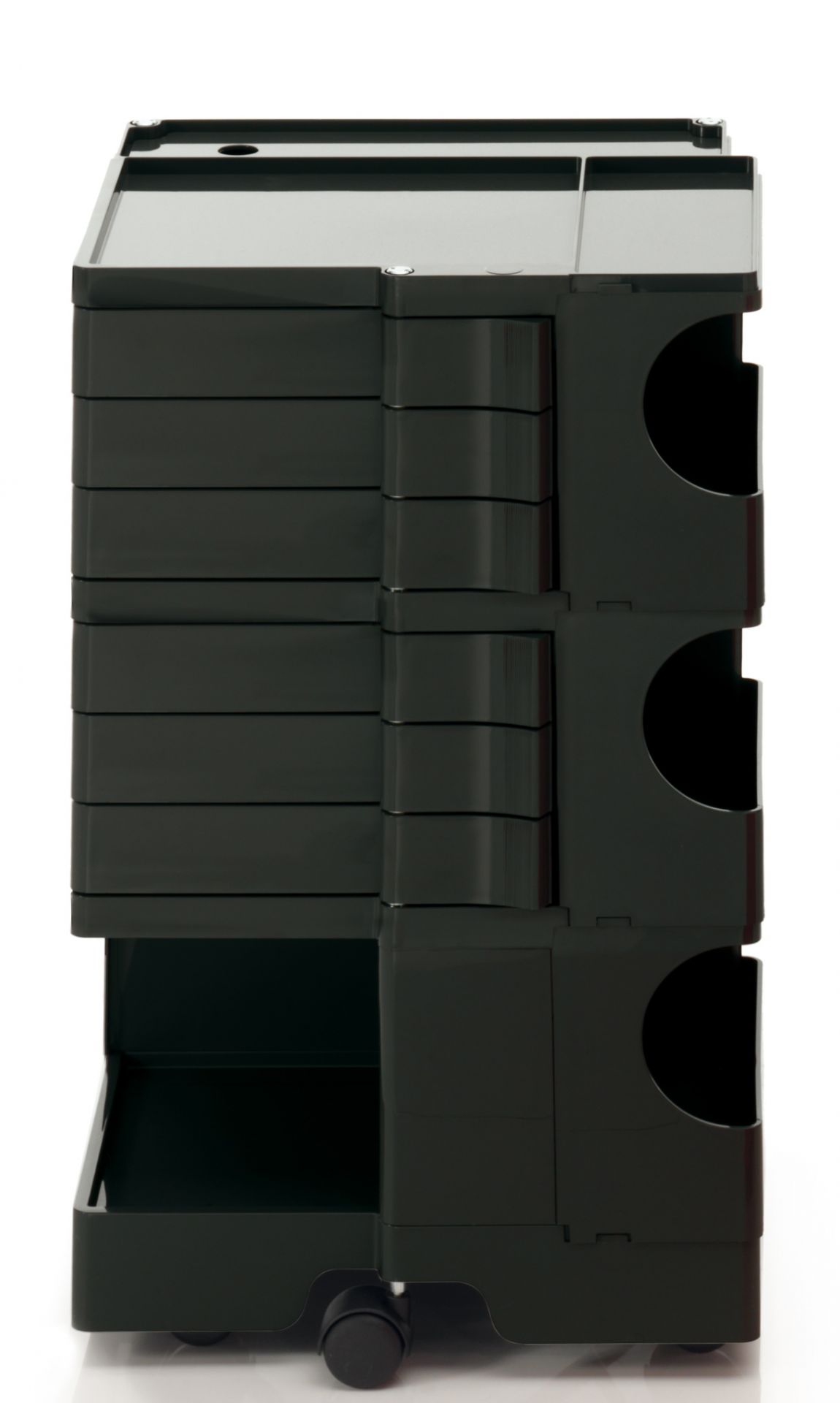 On peut voir que le conteneur à roulettes est un enfant des années 70 (Boby a été conçu en 1970). Le matériau de base est le plastique et les designers de l'époque ont élevé le plastique au rang de nouveau matériau tendance pour les meubles. Le conteneur à roulettes Boby a été conçu par une légende du design : Joe Colombo. Dès son lancement, Boby a remporté un prix, le SMAU Award. De plus, Boby fait partie de la collection permanente du Museum of Modern Art de New York et du Triennale Design Museum de Milan.