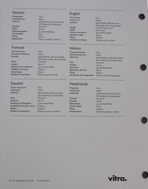| Réf. produit : | VITRA NUBIA STOFFMUSTERKARTE |