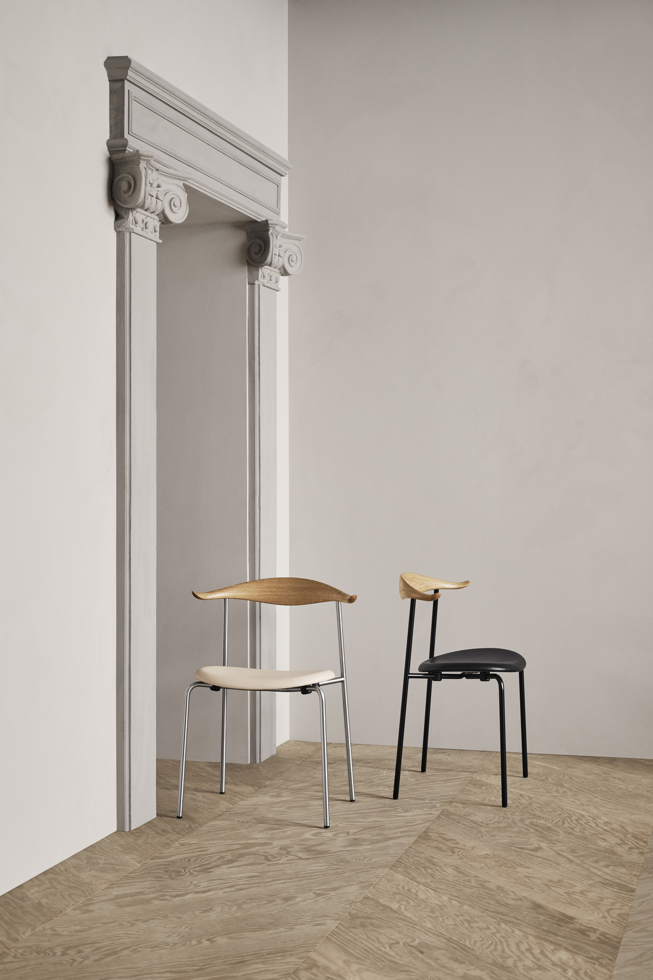 L' approchedu designer Hans J. Wegner pour les conceptions était très expérimentale. Il n'est donc pas surprenant que la CH88P soit une combinaison artistique de bois et d'acier. Cette chaise design illustre particulièrement bien l'approche ludique des conceptions et des matériaux du designer.