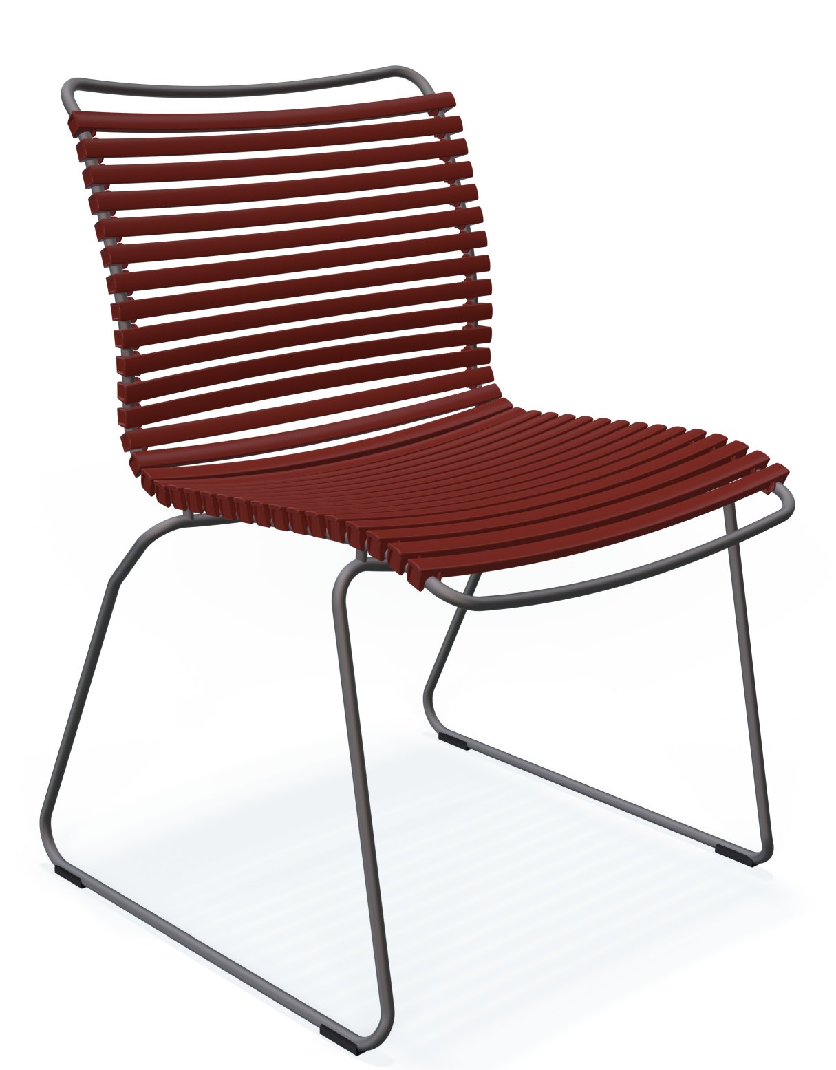 Comme toutes les chaises d'extérieur de la collection Click, cette chaise design est également réalisée dans différents matériaux. D'une part, il y a le cadre métallique et d'autre part, les lamelles en plastique de haute qualité.
