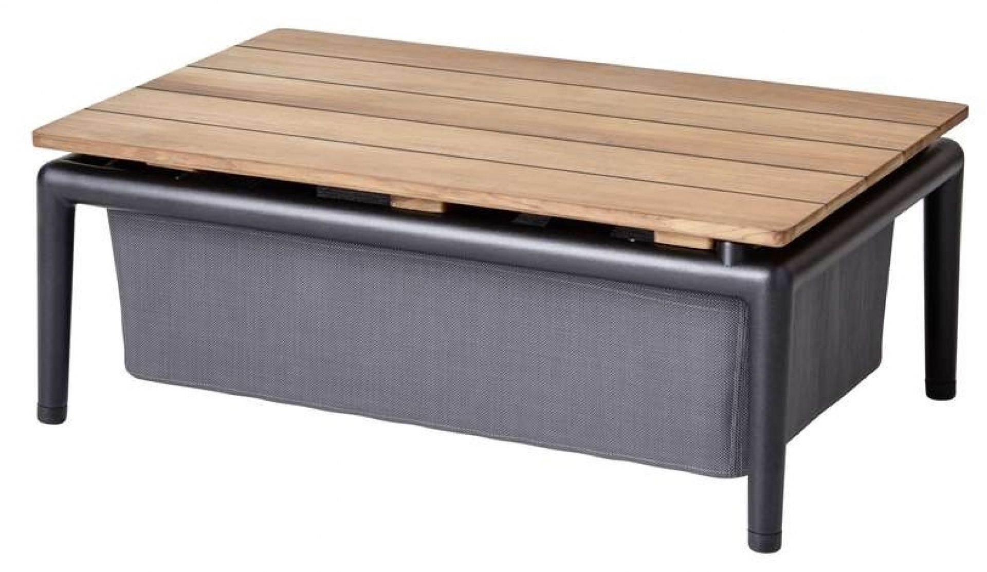 Un mobilier de jardin design particulièrement pratique de la collection Conic de Cane-Line est la table Box avec un grand compartiment de rangement.