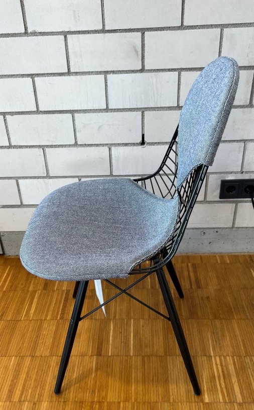 DKW-2 Wire Chair chaise avec assise et dossier rembourrés HOPSAK BLEU FONCE / ELFENBEIN Vitra PIÈCE D'EXPOSITION