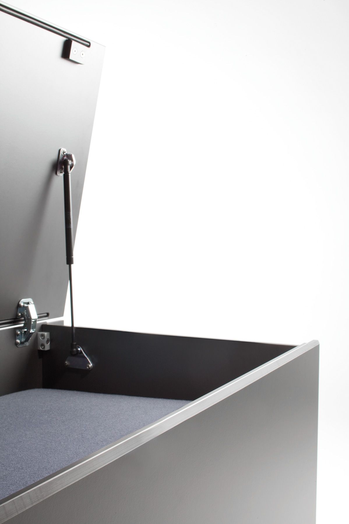 Le coffre à coussins El Pecho est fabriqué en HPL, un matériau résistant. De plus, un joint en caoutchouc est intégré dans le bord du couvercle, ce qui permet de fermer le coffre de manière étanche. Pour une stabilité optimale, les pieds réglables peuvent être ajustés.