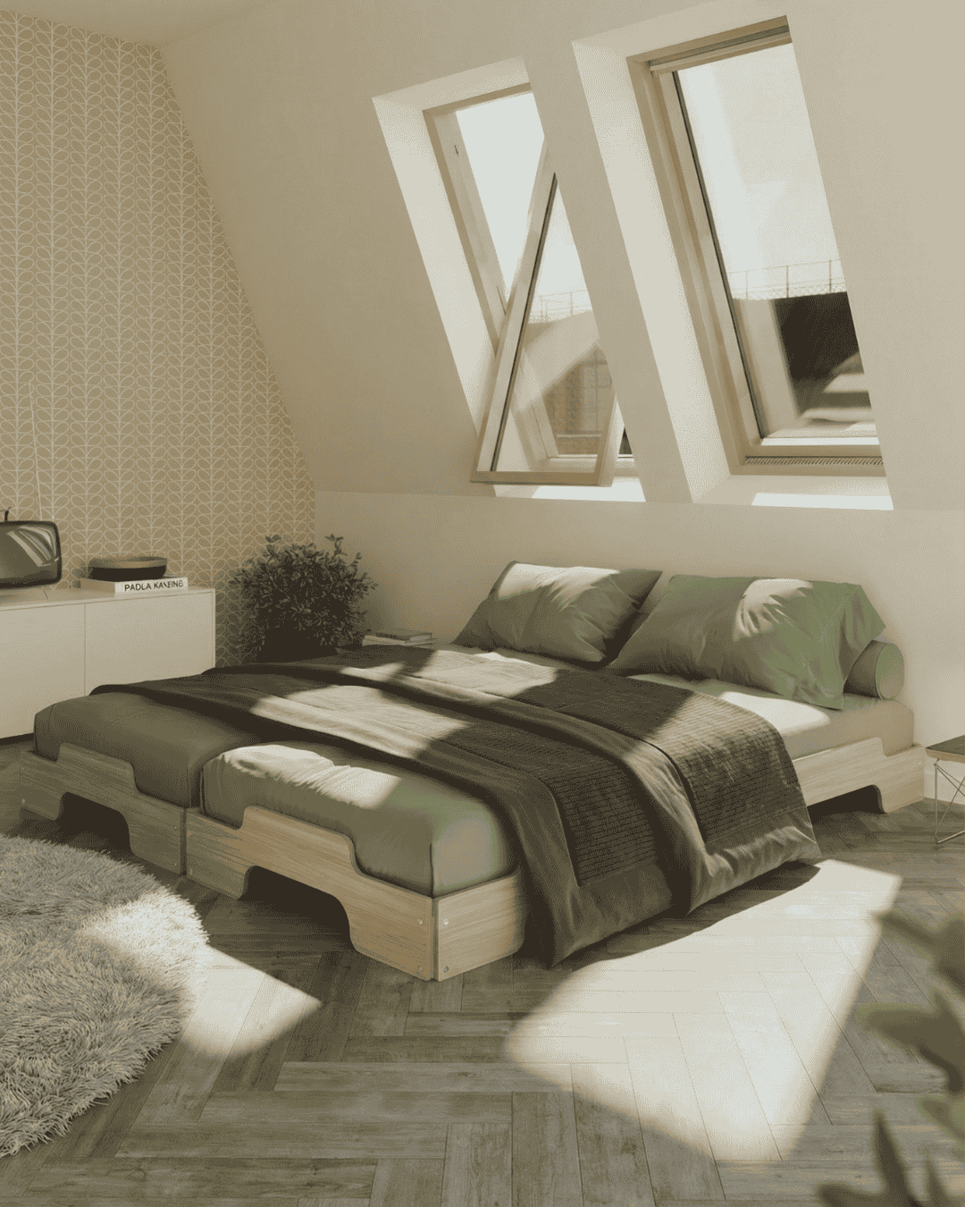 - Double (2 × 90 × 200 cm) : 186 × 203 cm