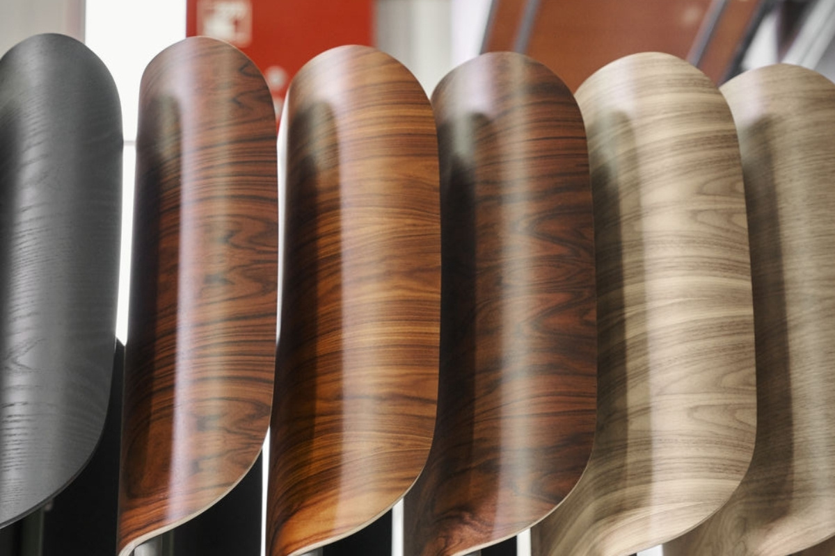 Six placages nobles de bois européens - du cerisier au châtaignier laqué noir - confèrent à l'Eames Lounge Chair son caractère unique. Affiné de manière durable avec un vernis à base d'eau.