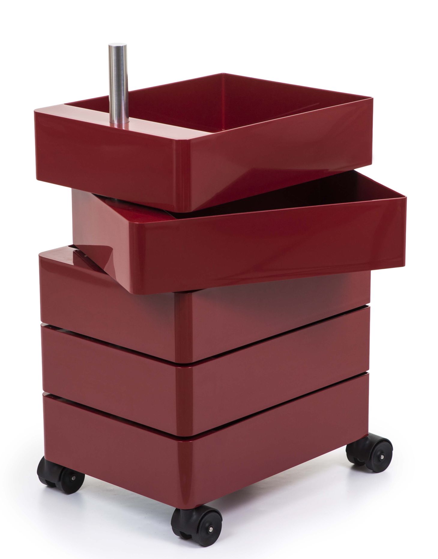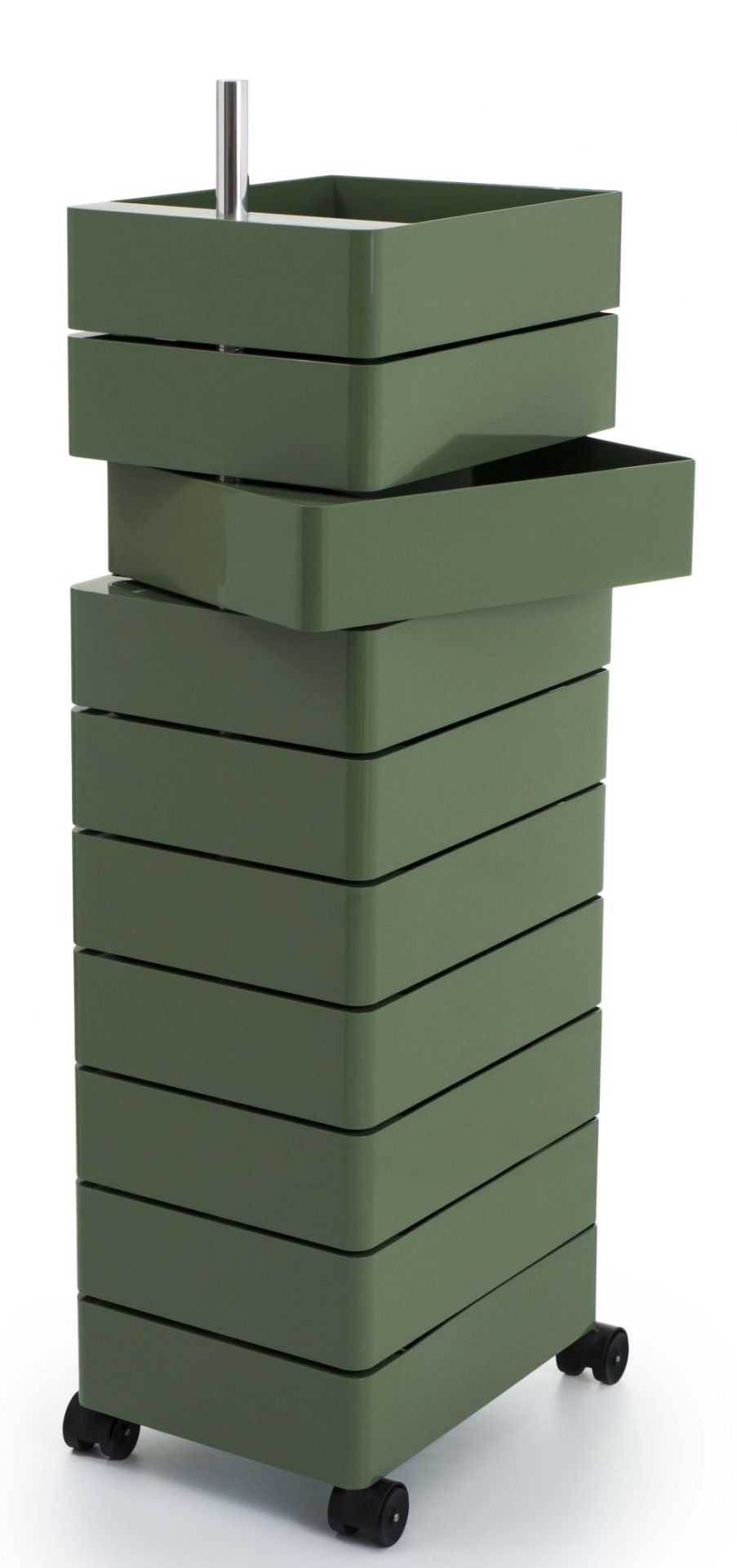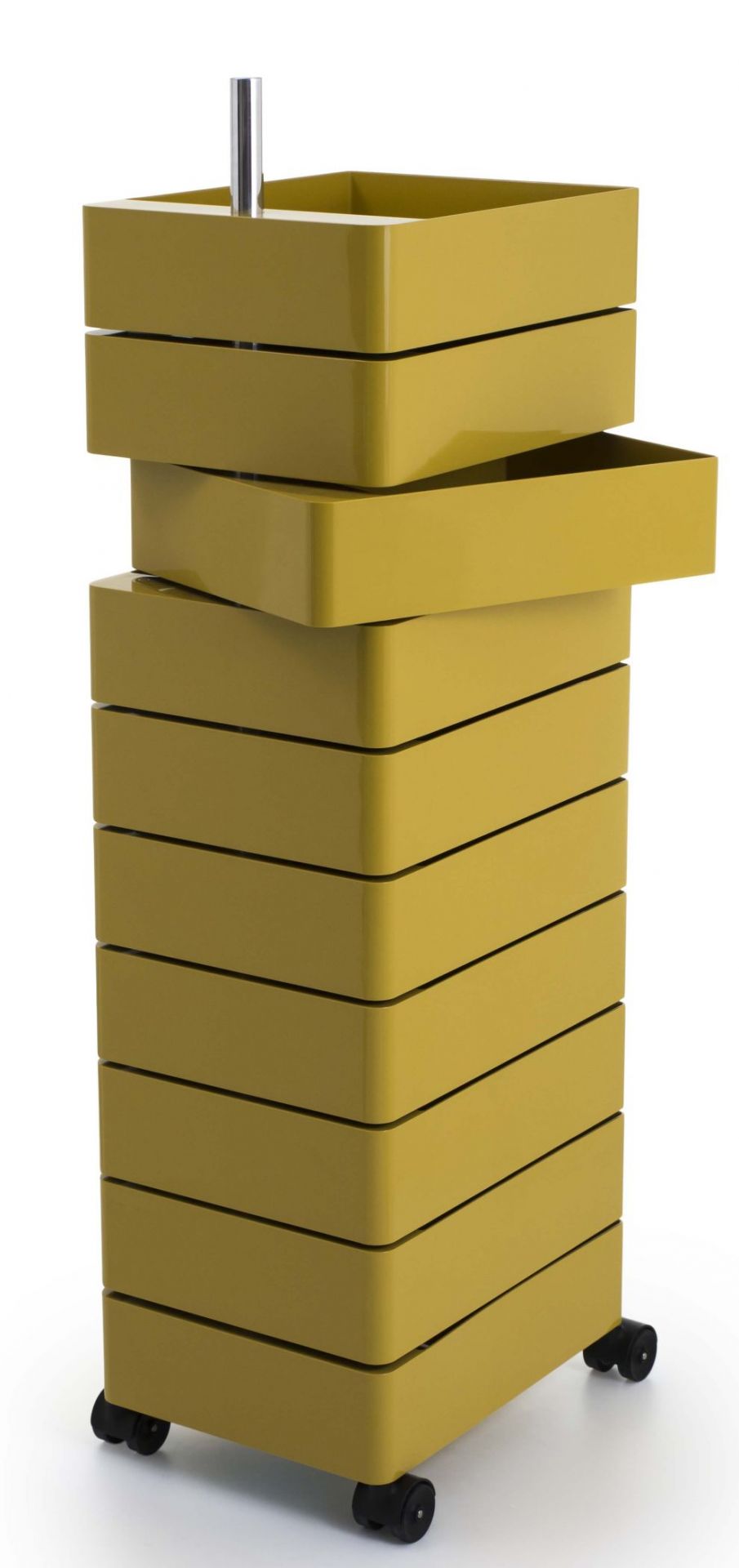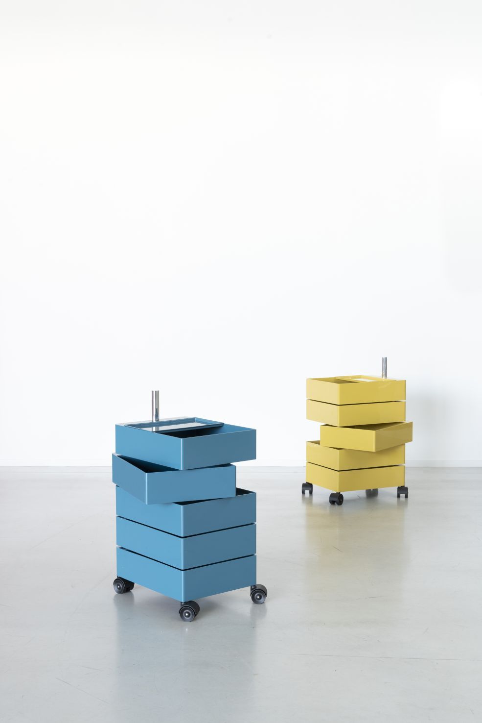 La série 360° de Magis ouvre de toutes nouvelles possibilités. Le conteneur mobile est non seulement flexible grâce à ses roulettes, mais aussi grâce à ses tiroirs qui peuvent être ouverts dans n'importe quelle direction. Ses coins arrondis font également en sorte qu'il n'est pas si facile de le heurter.