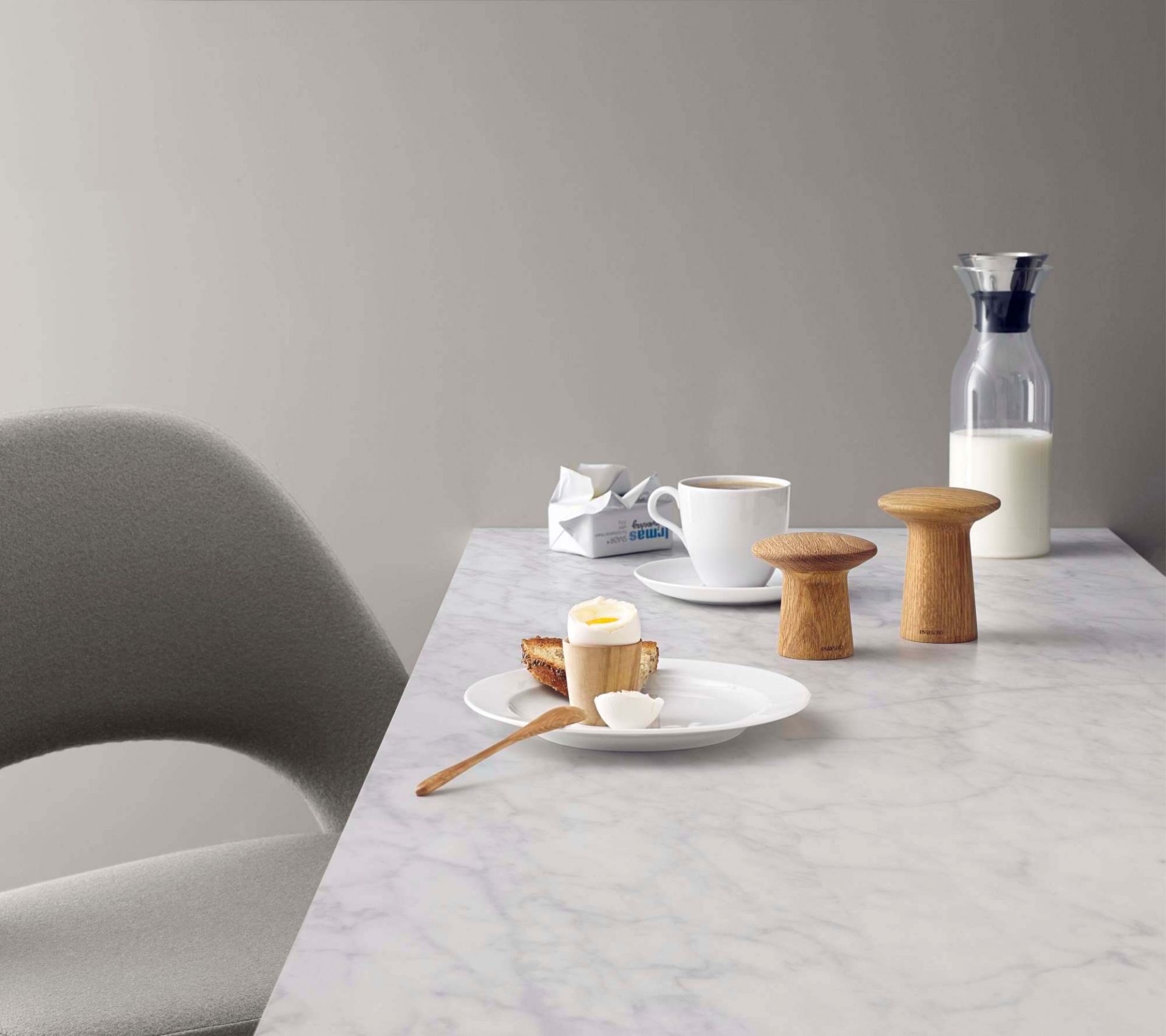 Tête de champignon : le moulin à sel et poivre d'Eva Solo. Grâce à leur design attrayant, les moulins sont un véritable régal pour les yeux - et conviennent également pour les conversations à table. Les broyeurs de conception se trouvent bien dans la main, le degré de broyage souhaité - fin, grossier ou moyen - peut également être ajusté. Vous pouvez remplir les moulins de sel ou de poivre - et comme vous avez généralement besoin des deux, il est préférable de commander deux moulins en même temps.