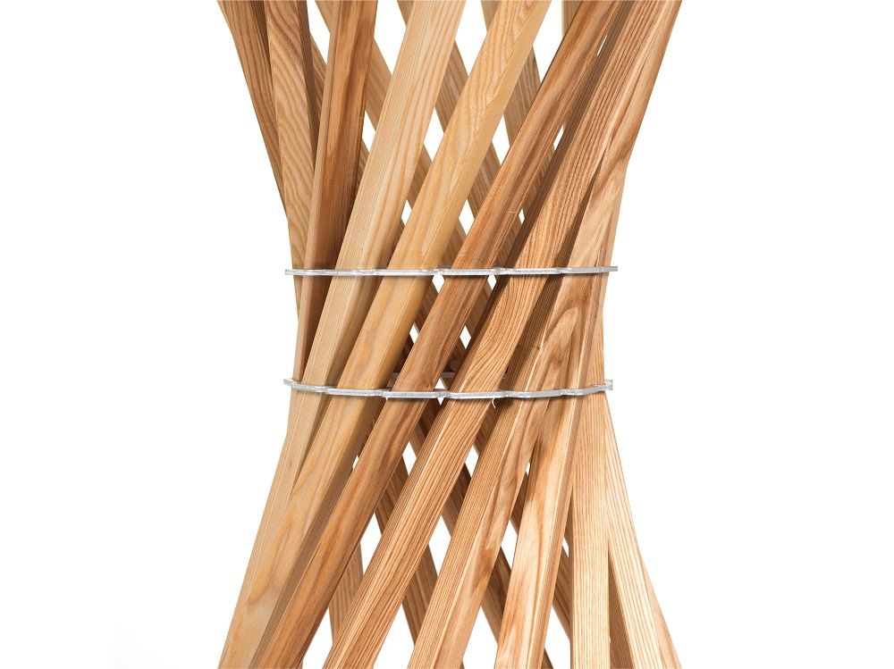 Le porte-manteau est fabriqué en bois et en acier inoxydable. Elle est disponible en trois variantes : frêne huilé, chêne huilé et noyer huilé. Le portemanteau mesure 90 cm de diamètre et 155 cm de hauteur Il pèse 15,5 kg et offre beaucoup de place avec 30 possibilités de suspension.