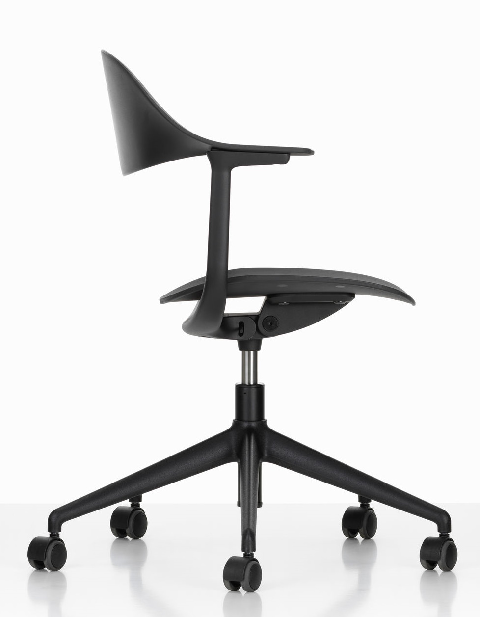 - Pied en cinq étoiles en polyamide noir profond avec roulettes doubles (Ø 50 mm)