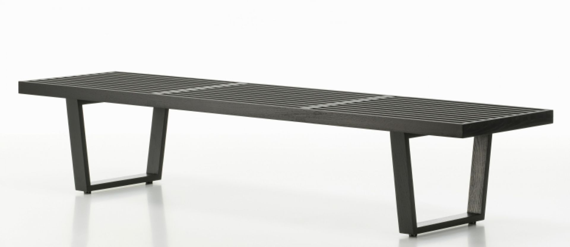 Rectiligne et claire - la forme du banc Nelson de Vitra montre ses origines, car le designer George Nelson dispose d'un bagage architectural. Ce banc élégant peut être utilisé non seulement comme siège, mais aussi comme table de rangement. Il est fabriqué en bois de frêne, une fois naturel et une fois peint en noir, ce qui crée un magnifique contraste.