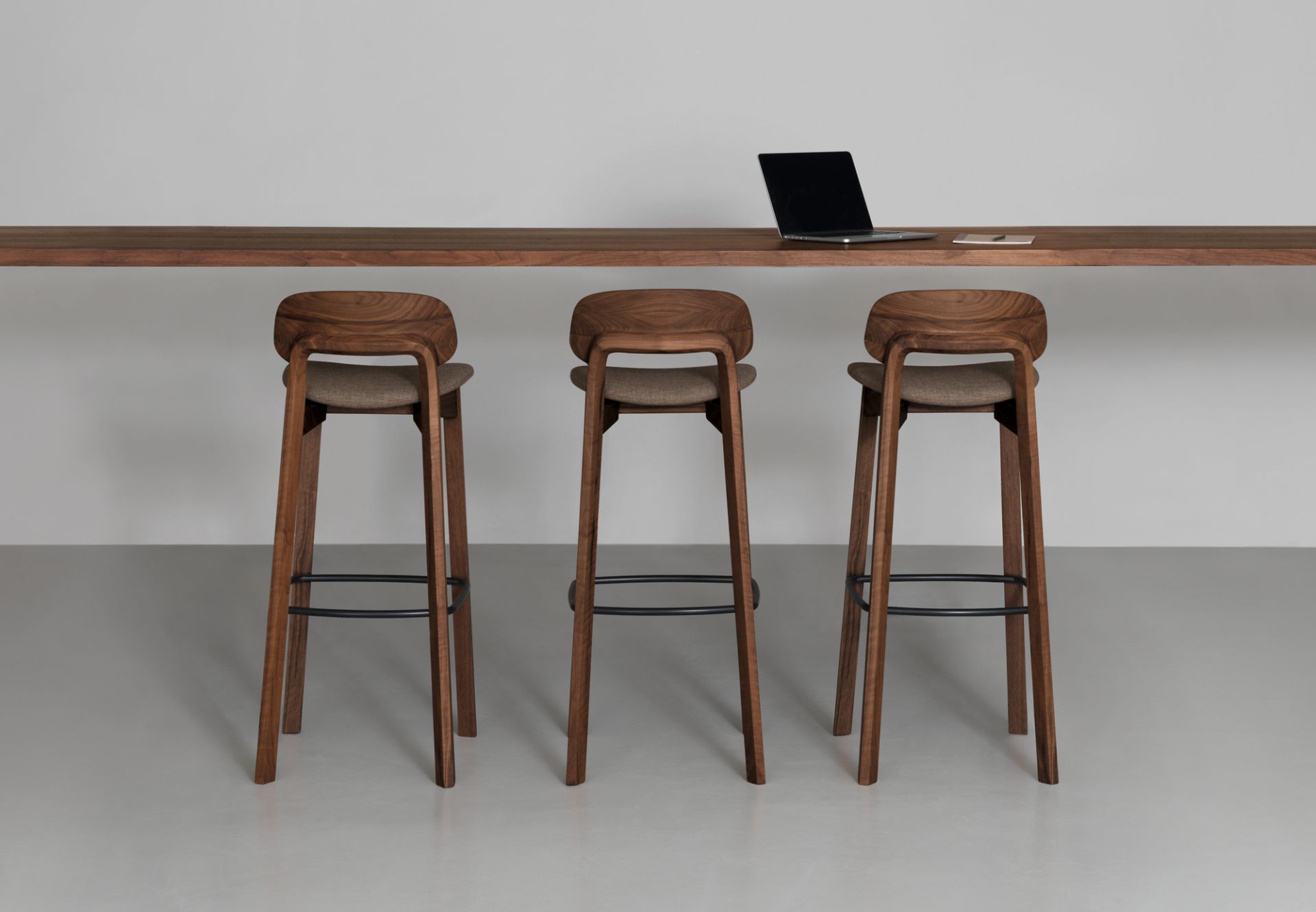 Le tabouret de bar Nonoto de Zeitraum a un effet presque sculptural, caractérisé par une combinaison spéciale de construction de cadre et de dossier. Un anneau métallique sert de repose-pieds et contribue à la stabilité - il crée également un aspect rustique qui complète parfaitement le tabouret de bar design.