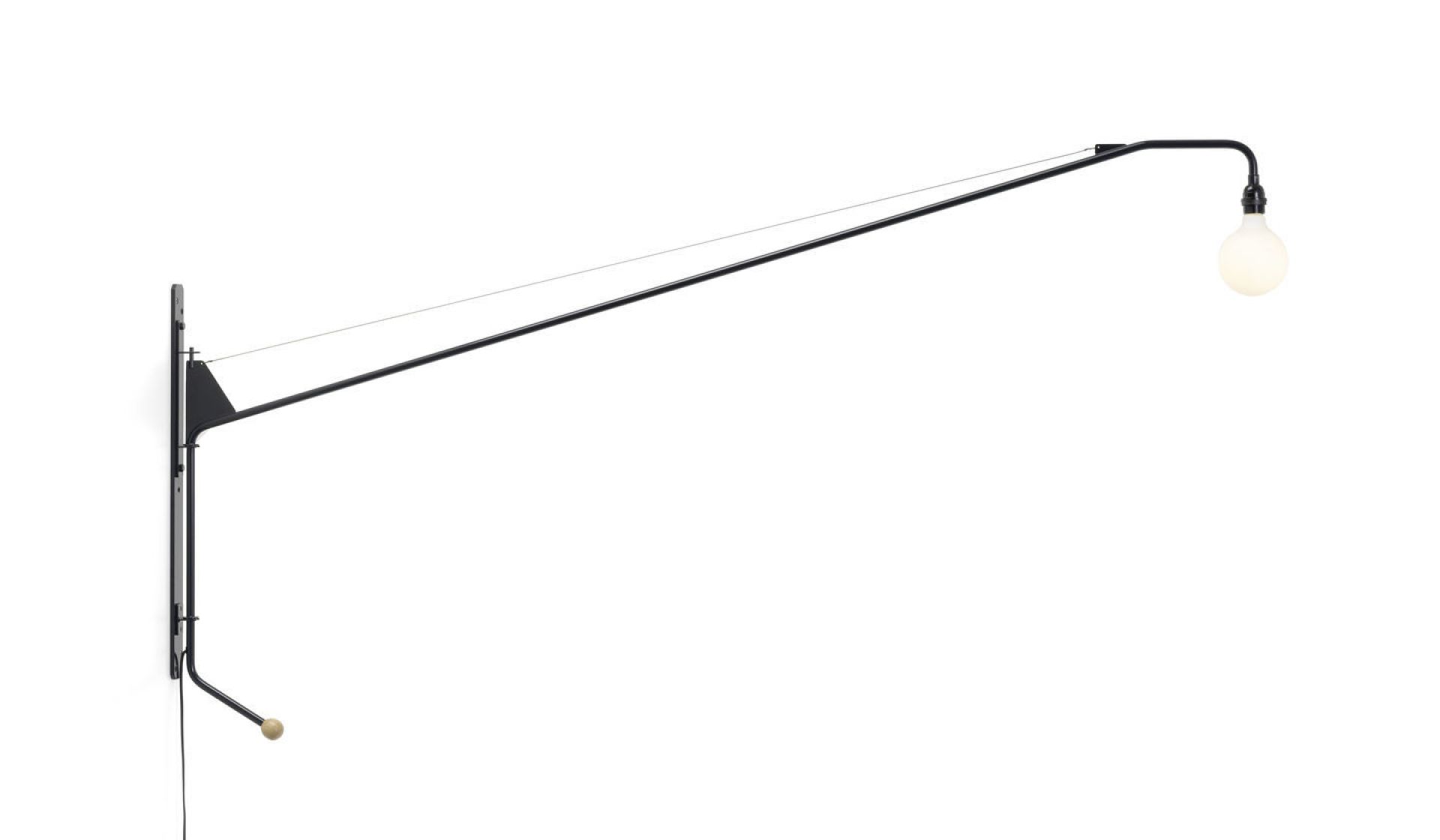 L’applique pivotable créée pour la maison "Tropique", vaut comme chef d’œuvre puriste de Jean Prouvé 1950. Coloris: noir.