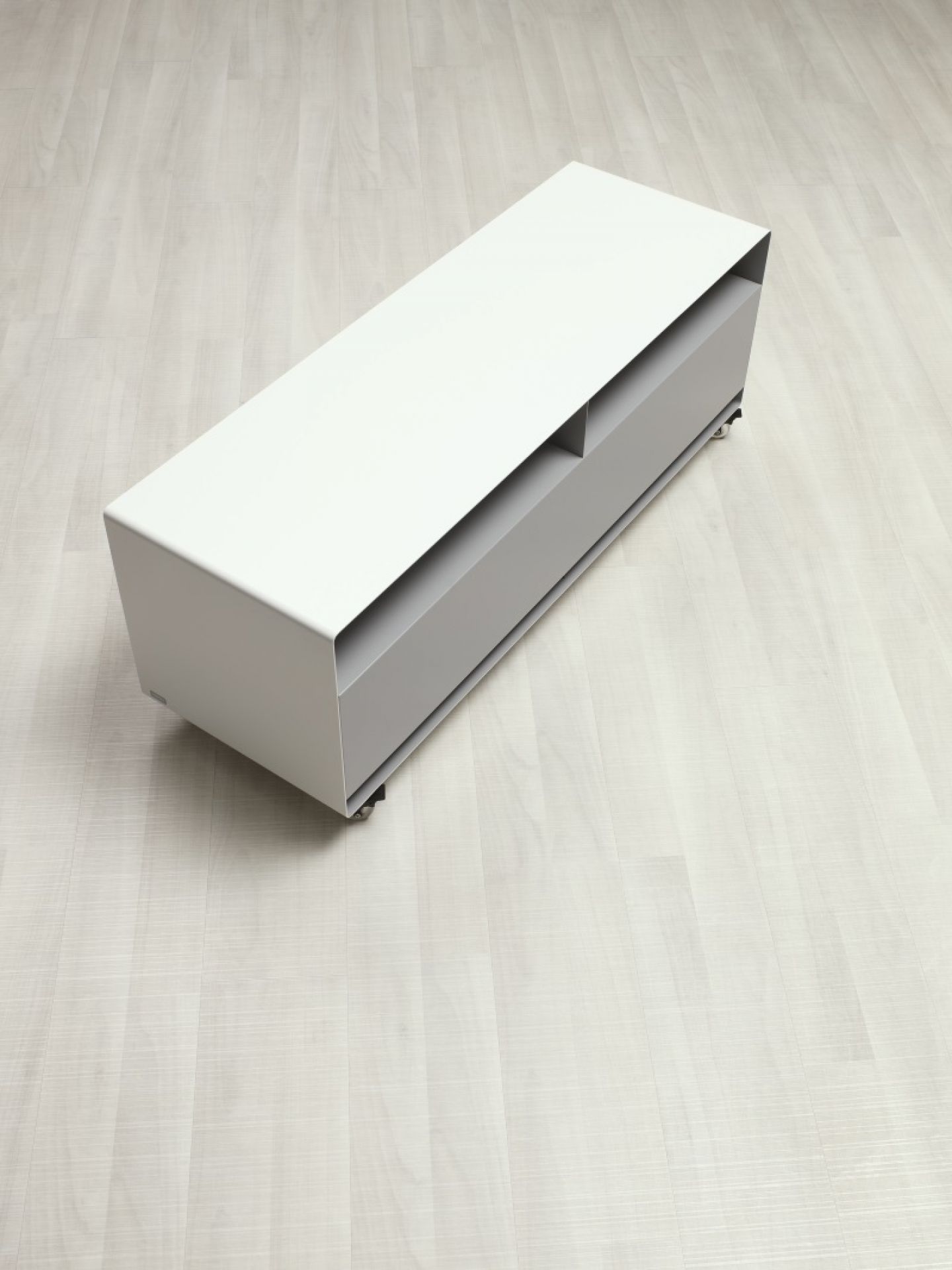 La planche Mobile Line 109 N a une largeur de 120 cm et est livrée avec des patins en aluminium ou sur roulettes. La porte rabattable a des arrêts en douceur et se ferme donc très doucement. Une fente pour les câbles se trouve dans le panneau arrière.