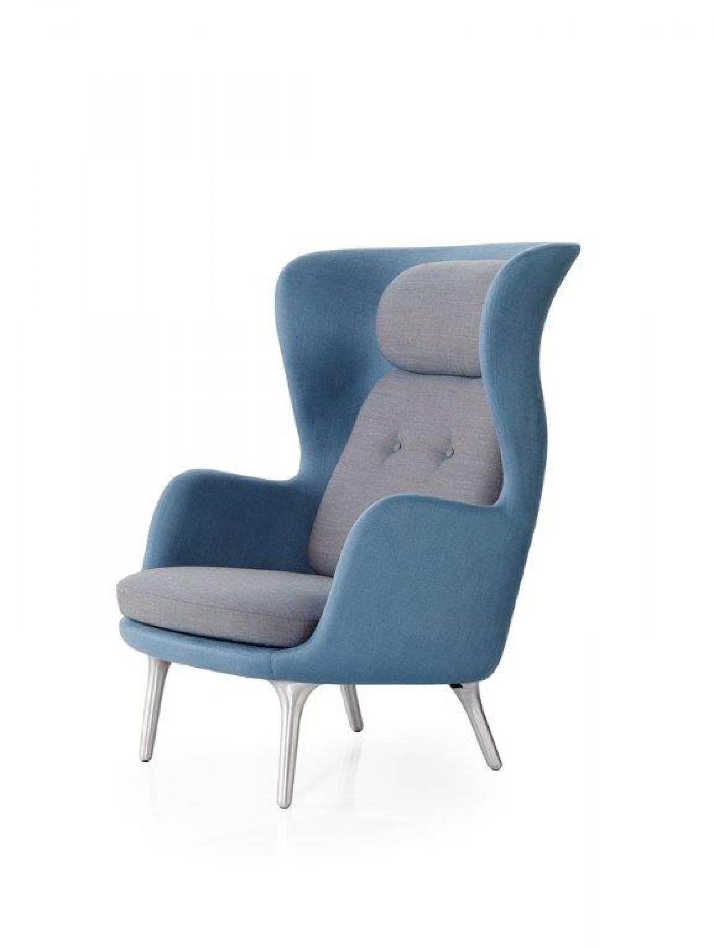 - clair bleu ( Coque: Mood 4102, coussin 734)Pour un optique plus dynamique la surface du fauteuil a des structures différentes pour la coque et les coussins, pour accentuer le constraste entre la coque dure extérieure et l' intérieur chaud, doux.