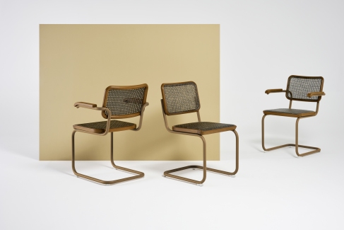 De 1920 à 1924, Marcel Breuer a suivi un apprentissage de menuisier au Bauhaus d'État de Weimar. Il y prend la direction de l'atelier de menuiserie à partir de 1925. Ce qui a commencé comme un projet privé est rapidement devenu partie intégrante du Bauhaus Dessau : ses créations de meubles précurseurs en tubes d'acier. Breuer quitte le Bauhaus en 1928 et cherche à se rapprocher de l'industrie, notamment de Thonet. Il s'installe à Berlin en tant qu'architecte et travaille principalement dans le domaine de l'architecture d'intérieur, avant de travailler quelques années pour Thonet. C'est ainsi que naît en 1930/31 une vaste collection de tubes d'acier. Breuer quitte l'Allemagne en passant par Budapest, Londres et atterrit finalement aux États-Unis en 1937. A cette époque, il développe des meubles en contreplaqué et en aluminium. Par l'intermédiaire de Walter Gropius, Breuer devient maître de conférences et plus tard même professeur d'architecture à l'université de Harvard à Cambridge. A partir de 1941, Gropius et lui dirigent ensemble un studio d'architecture. Breuer est considéré comme l'une des figures les plus centrales de l'histoire de l'architecture et du design.