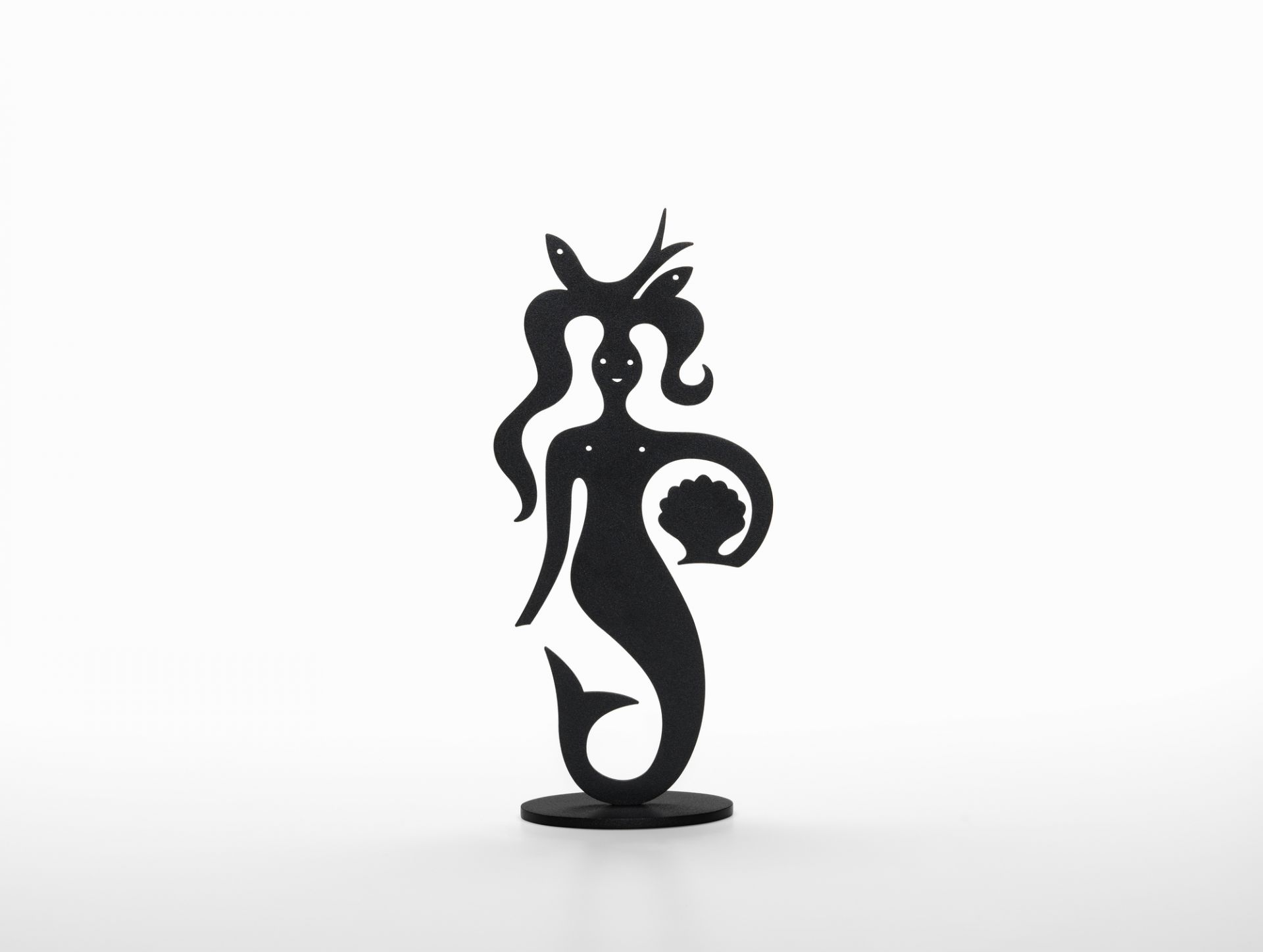 Les figurines Silhouette sont fabriquées en acier peint par poudrage et sont livrées avec une brochure dans un coffret en bois imprimé de haute qualité. Les deux figurines ont une largeur de 12,9 cm et une profondeur de 5,8 cm. La sirène est à 28,6 cm un