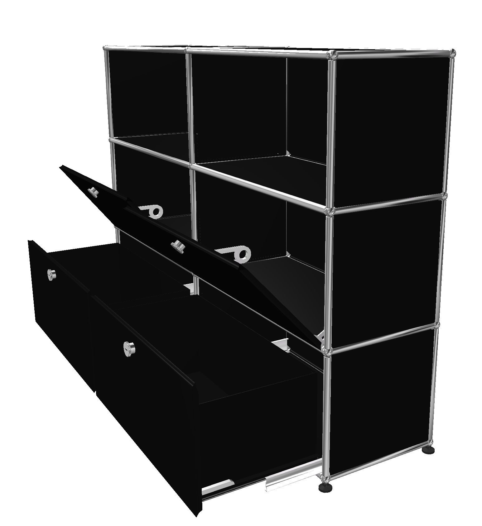 USM Haller Highboard 2 Open / 2 Flaps / 2 Drawer Noir graphite - FAST DELIVERY