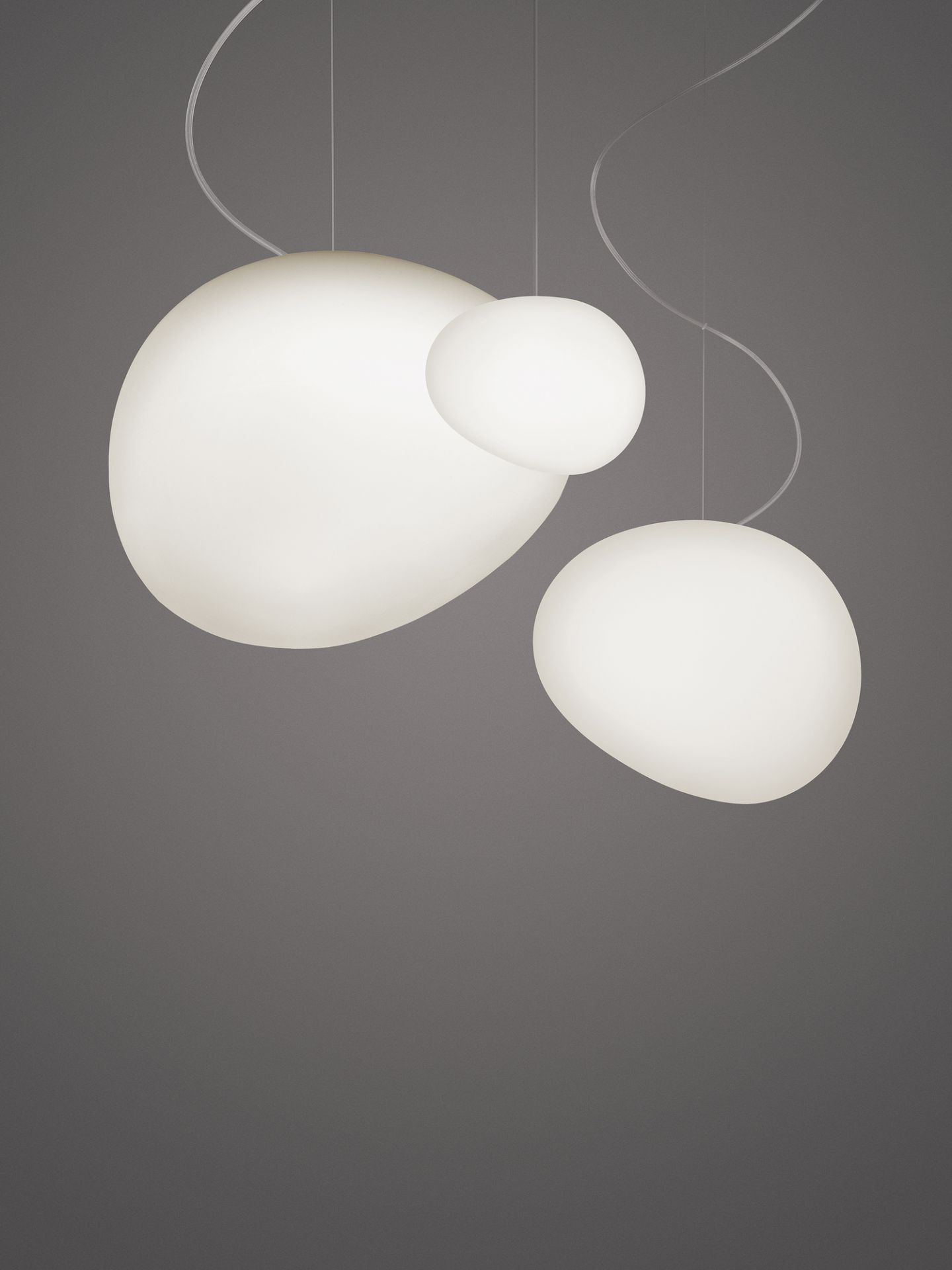 Des formes organiques en verre soufflé à la bouche - la série de luminaires Gregg de Foscarini attire le regard et fonctionne seule ou en faisceau de plusieurs luminaires.