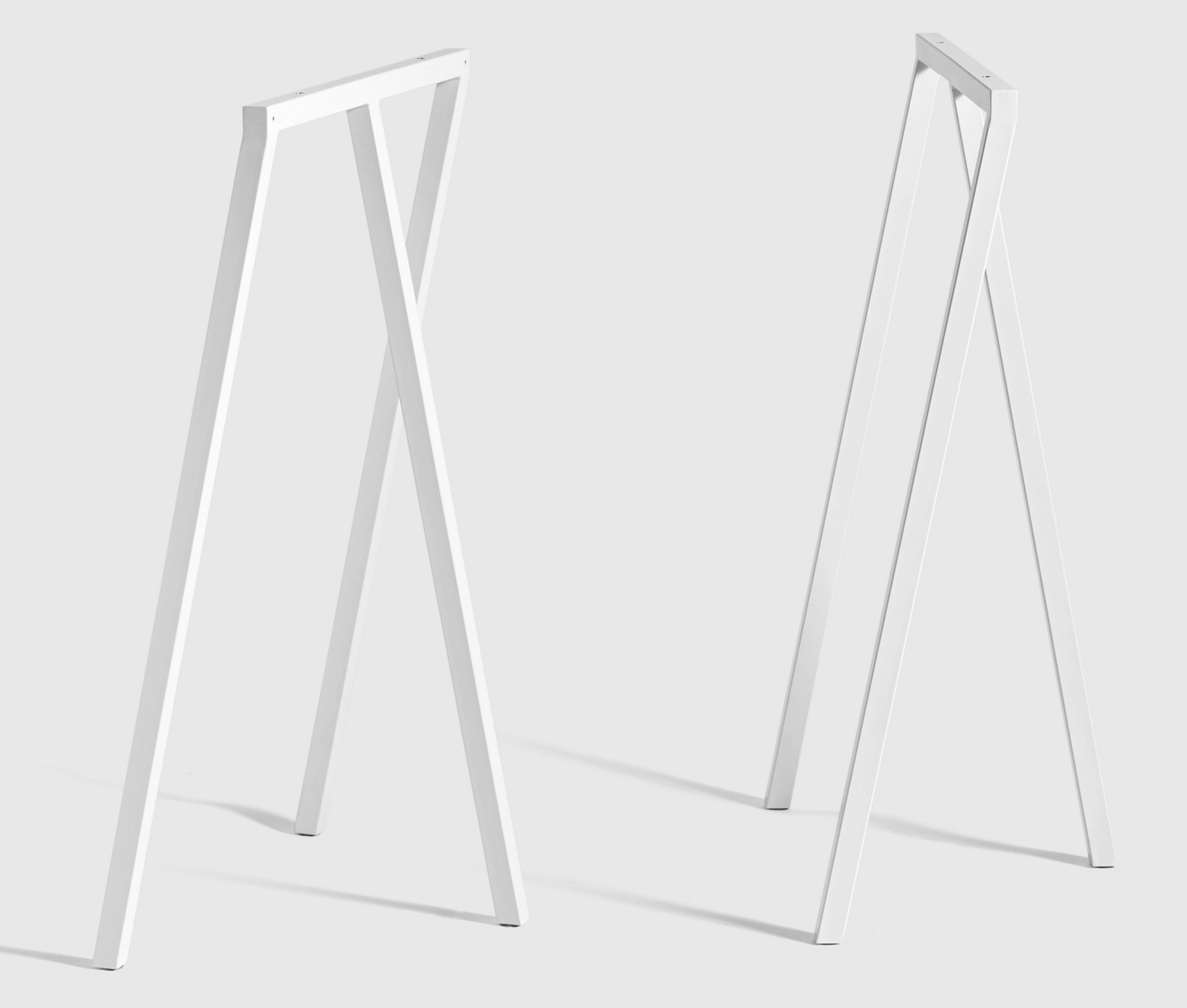 Du beau dans de l’ancien : avec les tréteaux Loop Stand Frame High de Hay vous pouvez réanimer votre vieux plateau en lui conférant un look industriel et chic. Vous avez le choix entre un piètement noir et blanc.