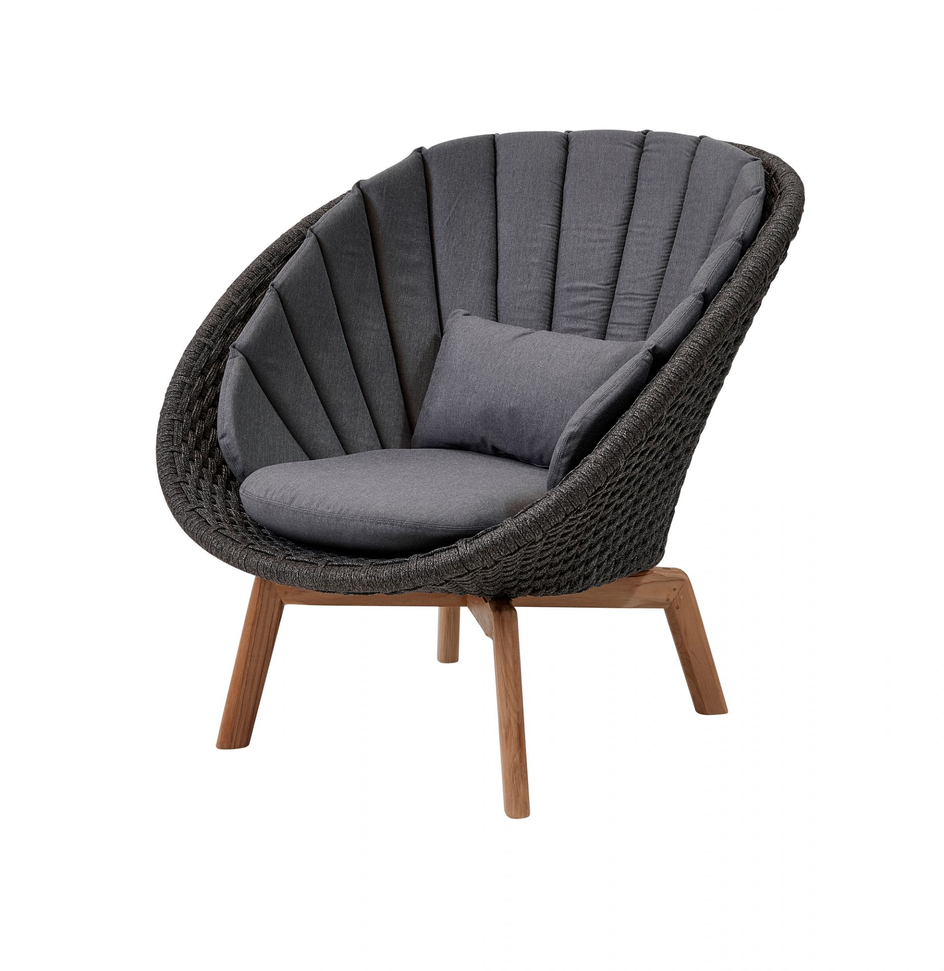 S'asseoir confortablement n'est pas un problème avec le set de coussins pour le confortable fauteuil lounge Peacock de Cane-Line!