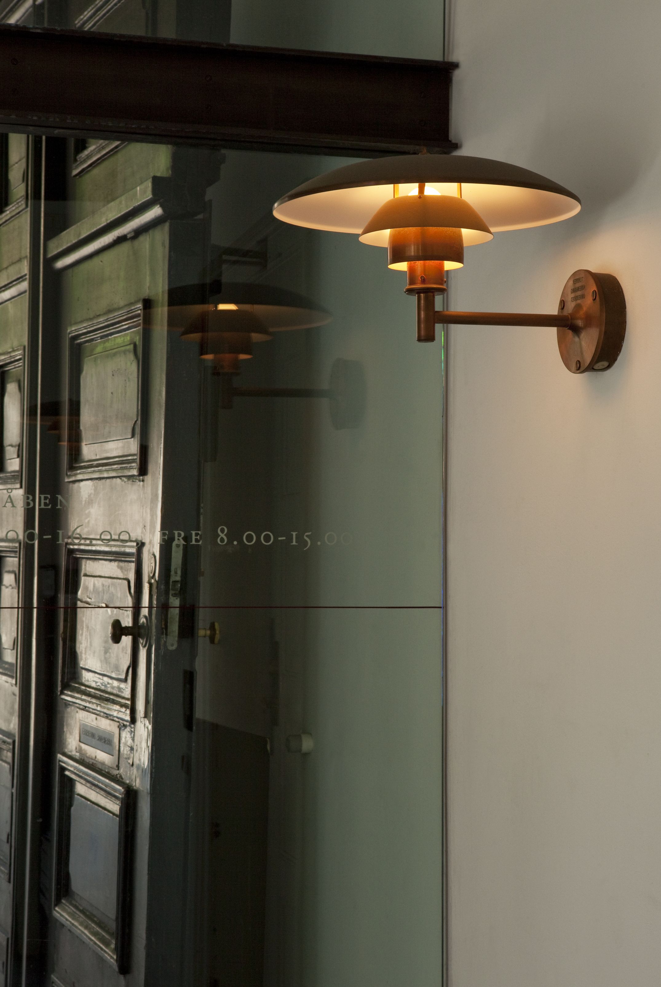 Le modèle PH Outdoor Wall fait partie de la série de 30 modèles à abat-jour en trois parties, dont trois sont des lampes d'extérieur.