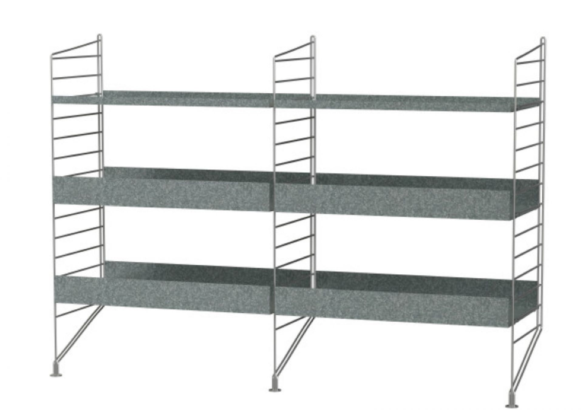 Le système d'étagères String est devenu un classique populaire pour le salon, la cuisine ou le couloir. Et comme c'est le cas pour les classiques, ils jouissent d'une grande popularité. Alors pourquoi ne pas proposer une version extérieure ? C'est là que l'étagère String manque encore ! Le métal galvanisé permet à l'étagère de résister à toutes les intempéries et, comme effet secondaire, crée une belle apparence robuste et urbaine.